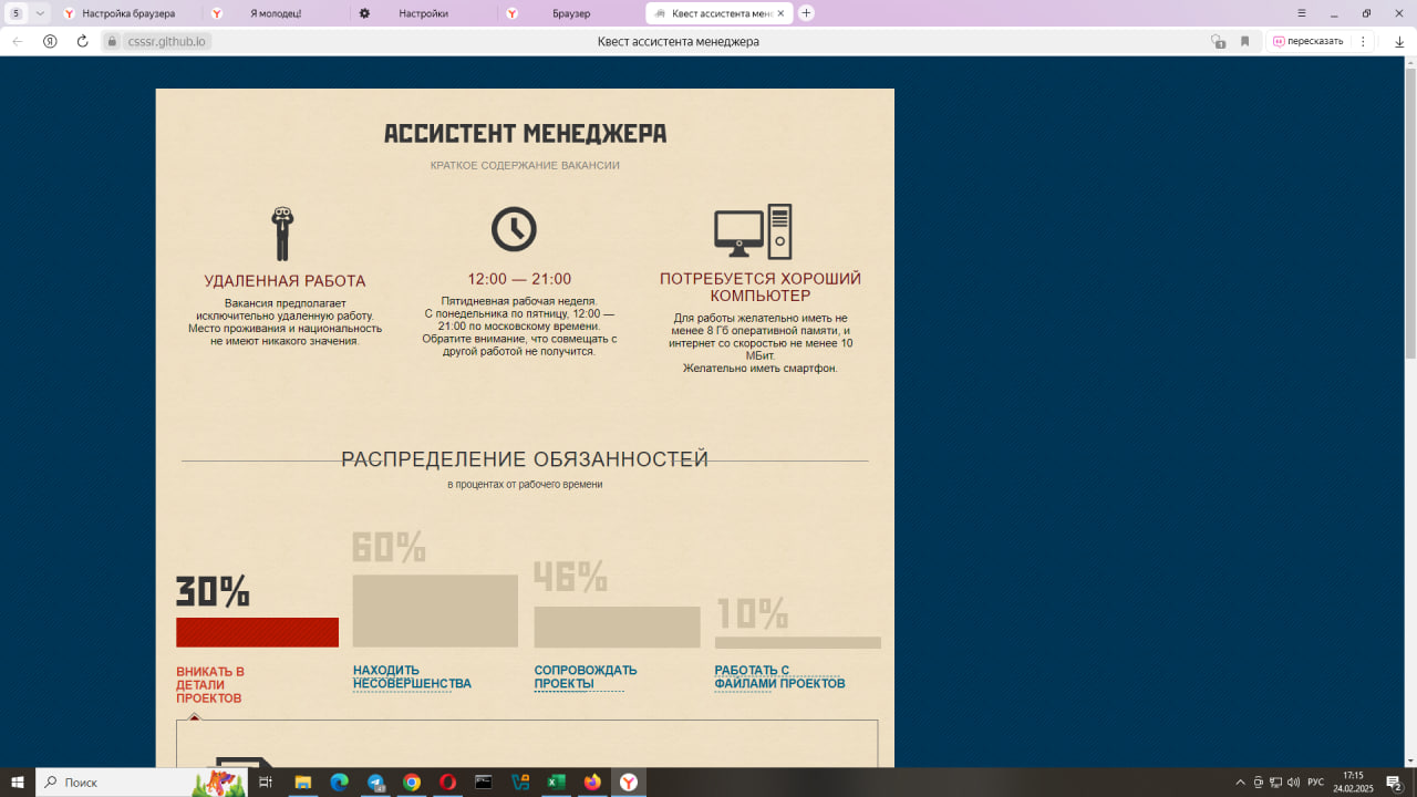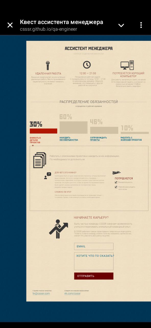 Steps: открыть сайт Ассистент менеджера поочередно в браузере хром, опера, мозилла, яндекс, хром в мобильном телефоне.